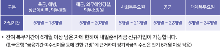 (1) 가입 대상 : 대한민국 병역 의무 이행자